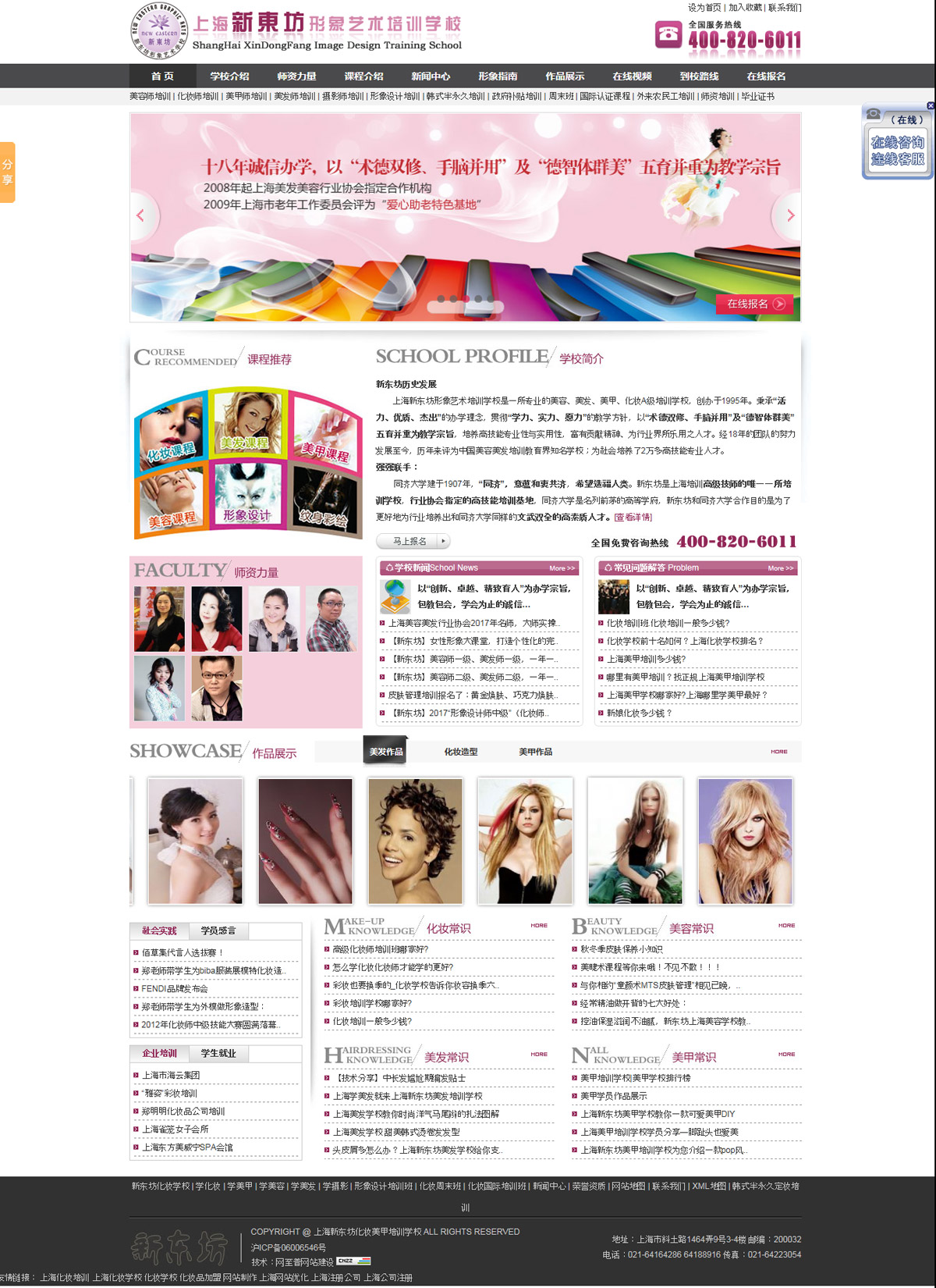 上海新東坊形象藝術(shù)培訓學校是一所專業(yè)的美容、美發(fā)、美甲、化妝培訓學校,創(chuàng)辦于1995年。秉承“活力、優(yōu)質(zhì)、杰出”的辦學理念,貫徹“學力、實力、愿力”的教學方針,以“術(shù)德雙修、手腦并用”及“德智體群美”五育并重為教學宗旨,培養(yǎng)高技能專業(yè)性與實用性,富有貢獻精神、為行業(yè)界所樂用之人才。經(jīng)18年的團隊的努力發(fā)展至今,歷年來已成為中國美容美發(fā)培訓教育界優(yōu)秀學校。自創(chuàng)辦以來吸引了全國及香港特區(qū)、臺灣地區(qū)以及日本、韓國、新加坡、澳大利亞、新西蘭、挪威等各國的莘莘學子前來就學。學校本著以人為本的多元化教學模式,為社會培養(yǎng)了一批又一批的專業(yè)人才,也為社會的再就業(yè)工程做出了奉獻,深受社會各界的好評。