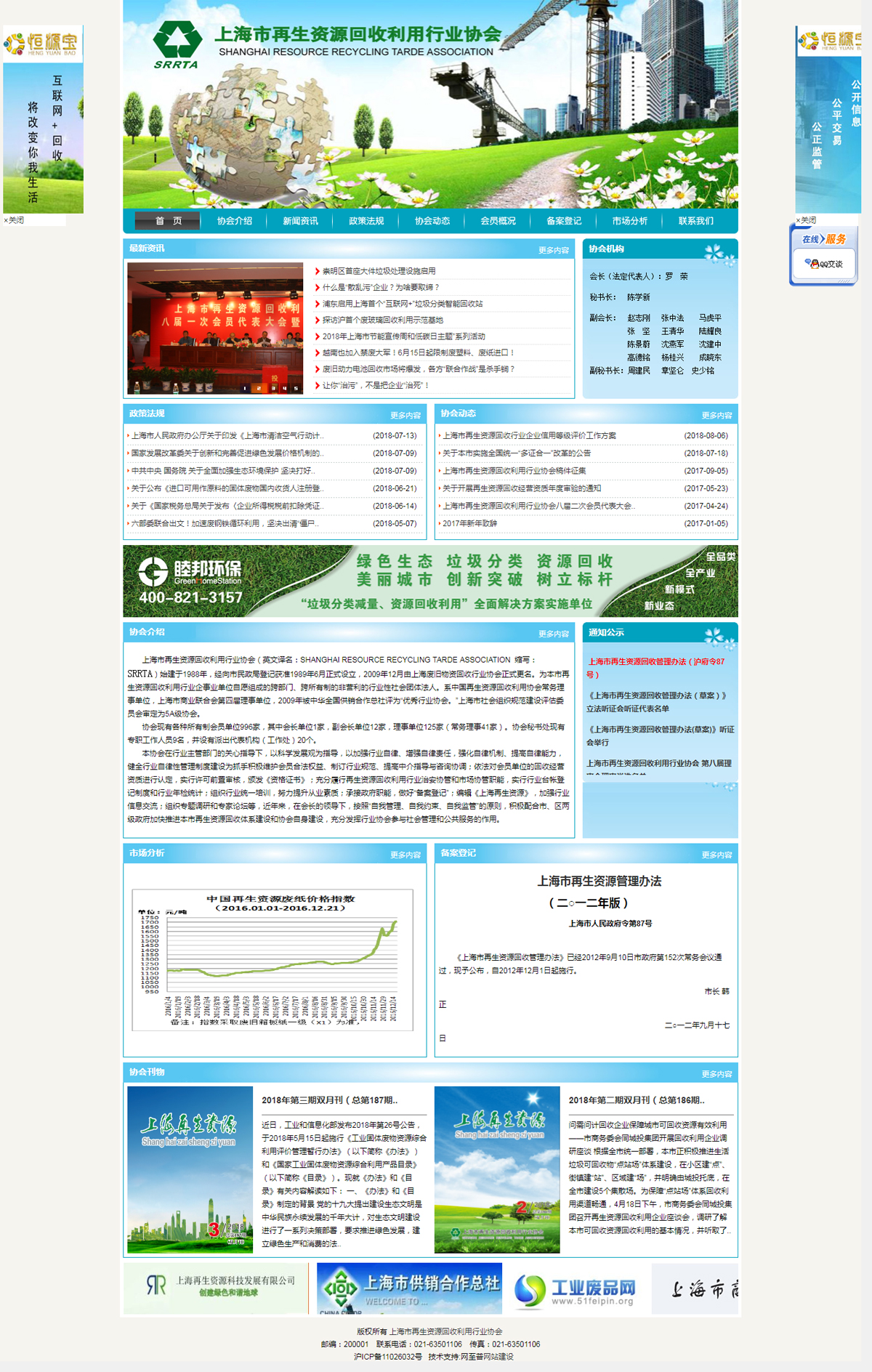 上海市再生資源回收利用行業(yè)協(xié)會(huì)(英文譯名: SHANGHAI RESOURCE RECYCLING ASSOCIATION 縮寫: SRRA)始建于1988年,經(jīng)向市民政局登記獲準(zhǔn)1989年6月正式設(shè)立,2009年12月由上海廢舊物資回收行業(yè)協(xié)會(huì)正式更名。為本市再生資源回收利用行業(yè)企事業(yè)單位自愿組成的跨部門、跨所有制的非營(yíng)利的行業(yè)性社會(huì)團(tuán)體法人。
